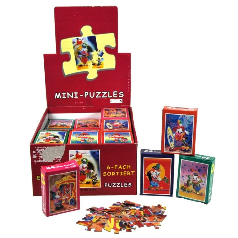 Cute puzzles for children. These puzzles are available in various circus performances such as juggling, puppets or with a tiger. When you put the puzzle it has a dimension of 12 x 17 centimeters.