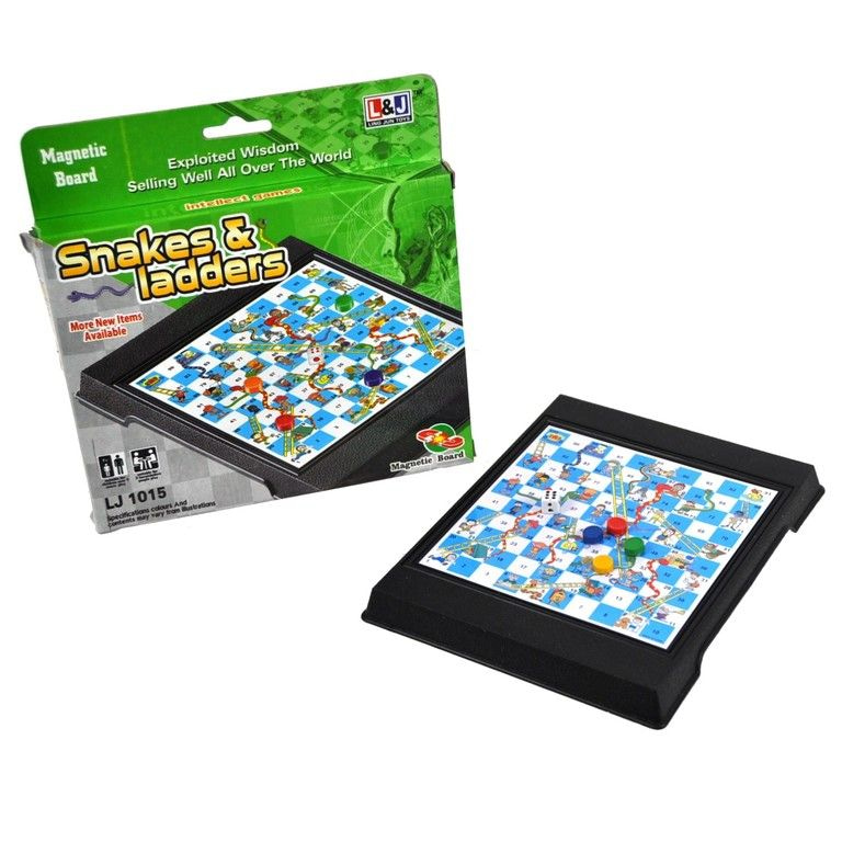 Snakes and ladders game trip. A fun activity for camping, the beach and even in the car. This game is magnetic so the pions are excluded from the game.