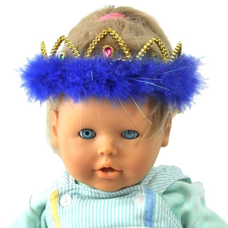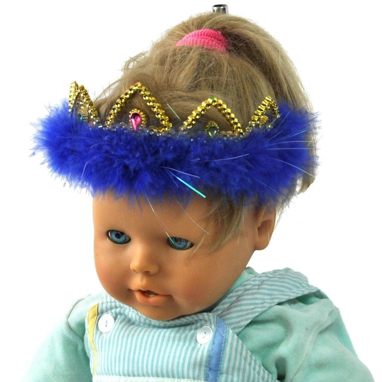 A shiny golden crowns for princesses and queens. This crown is fitted with a soft plush edge in the color blue.