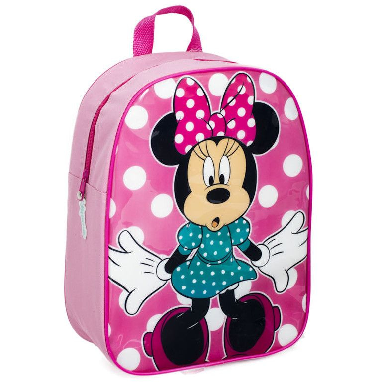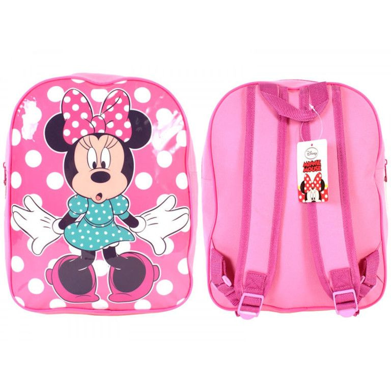 A pink school bag for children. This satchel pretty solid and equipped with a large image of the world famous Disney mouse "Minnie Mouse".