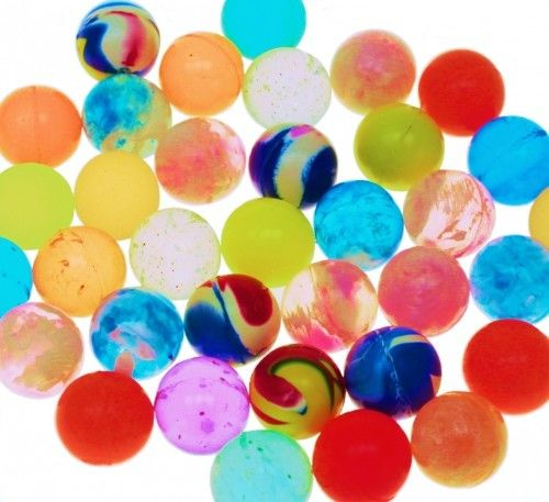 Beautiful colored bouncing balls with a diameter of approximately 2 centimeters. Nice little toy for in, for example, a joke tone.