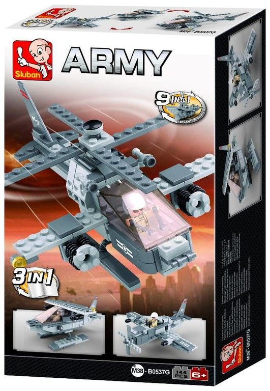 Sluban Army Battle Helicopter 3in1 M38-B0537G. The Battle Helicopter from the Army Series of Sluban.