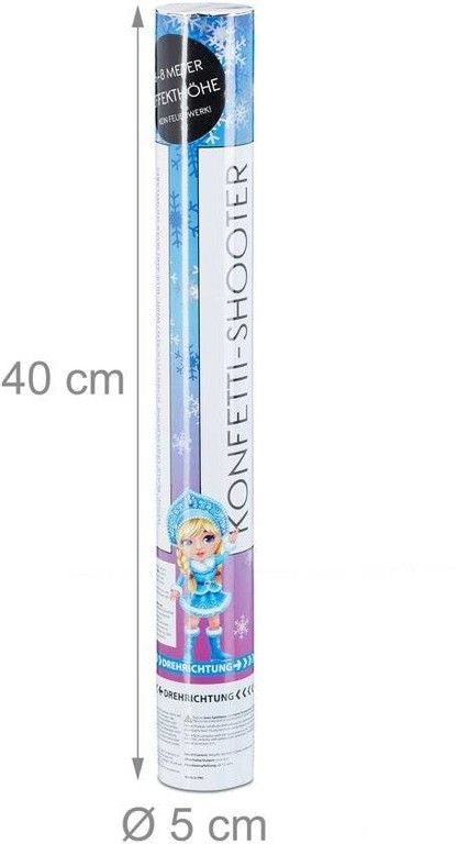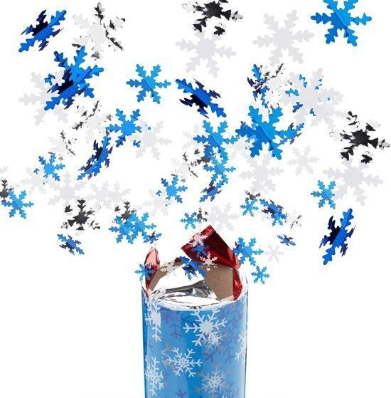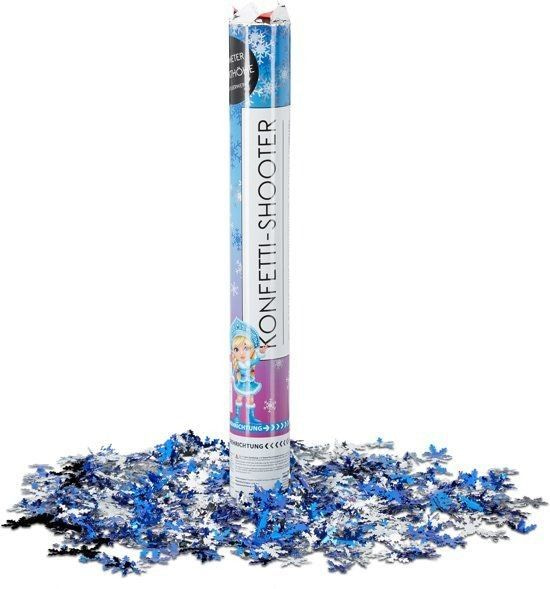 Confetti cannon - Snowflake - 40 cm - party shooter. Whether it's on a birthday, or on New Year's Eve, this party popper is the hit at the next event. With the confetti cannon you can ensure the perfect mood in no time. Unlike the normal party poppers, this confetti cannon has shiny metallic confetti, which makes for a beautiful effect. The white-blue metallic confetti is reminiscent of snowflakes and the cold season. Especially in children a real hit. It is easy to use: Keep the party popper upright. Hold the upper part with one hand and with the other hand turn the bottom part with the arrow to the left.